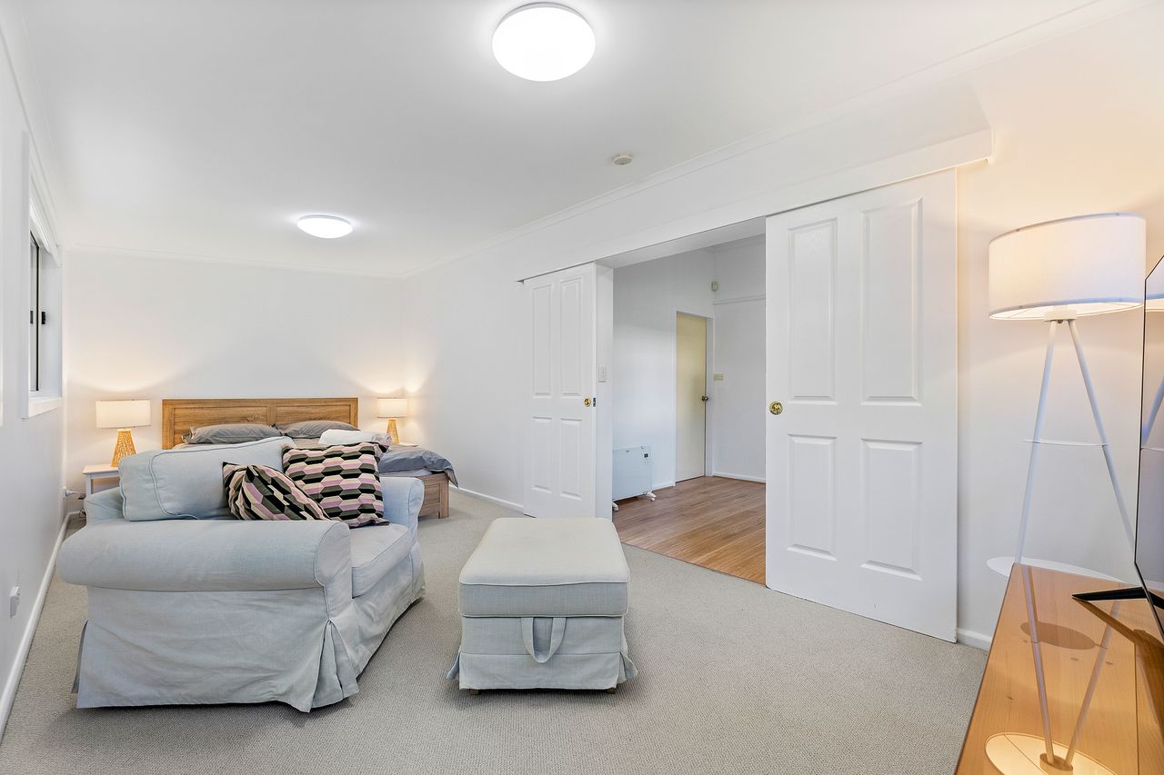 Downstairs features a spacious bedroom with a Queen-sized bed, as well as a kitchenette, bathroom and dryer and air conditioner has recently been installed. It can be used as a self-contained space if needed.