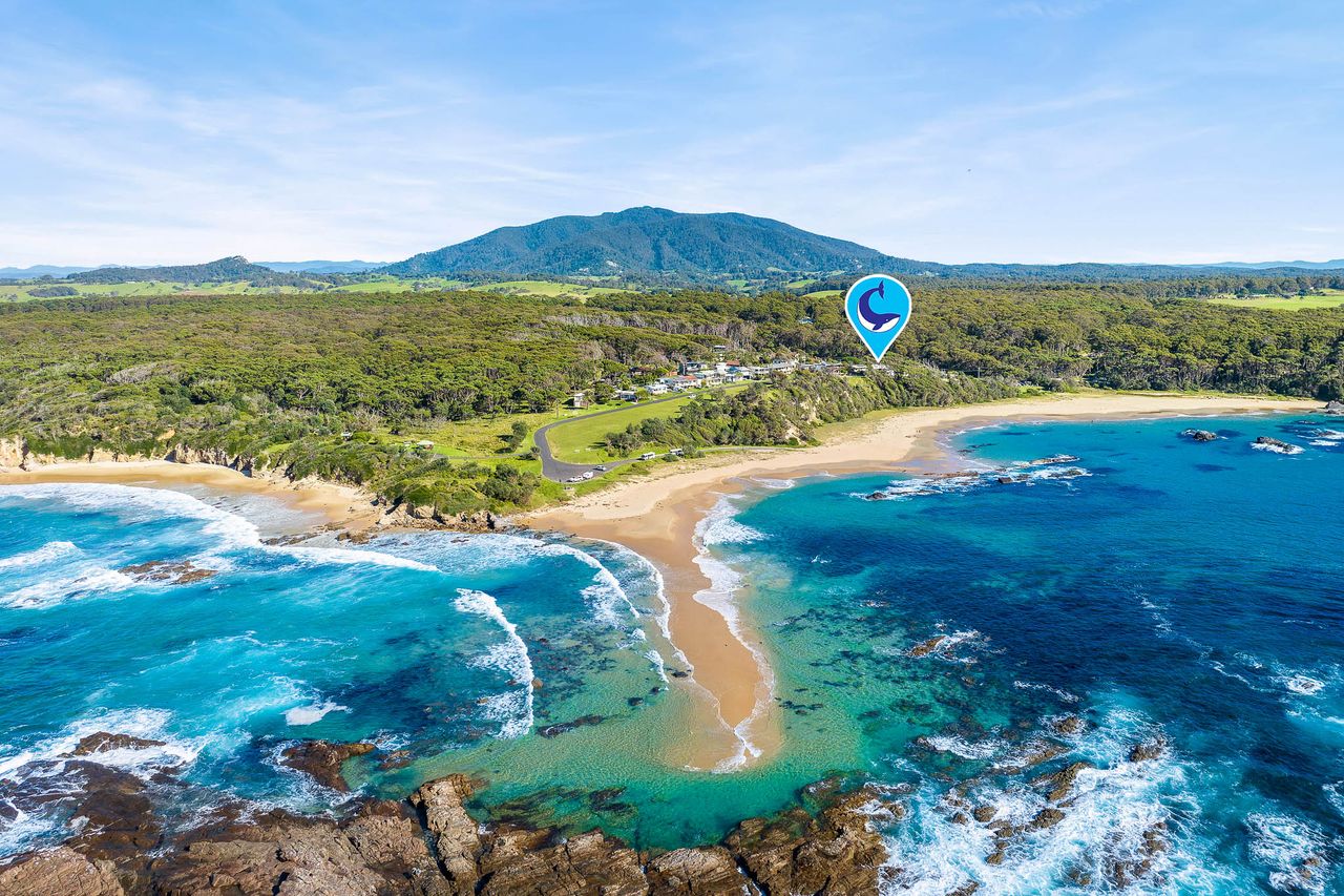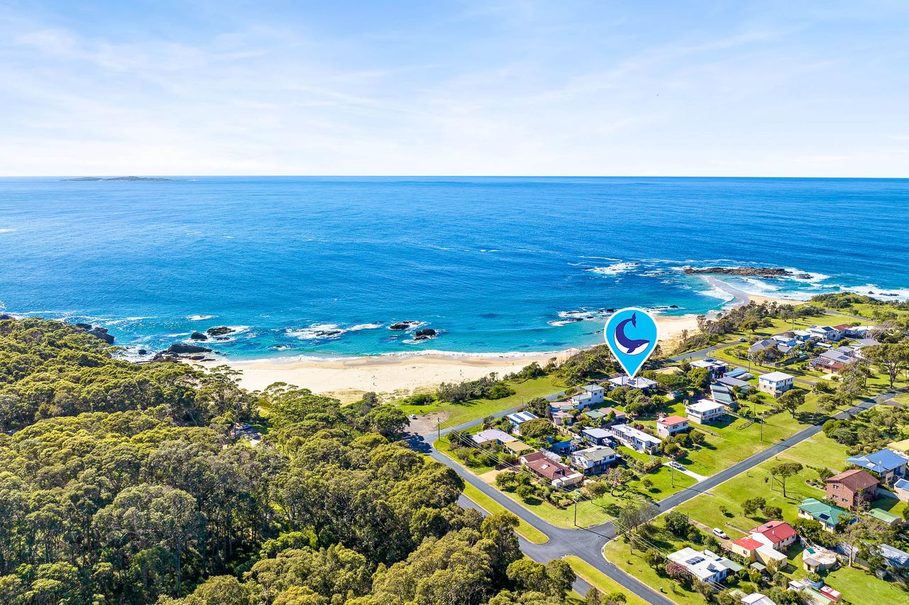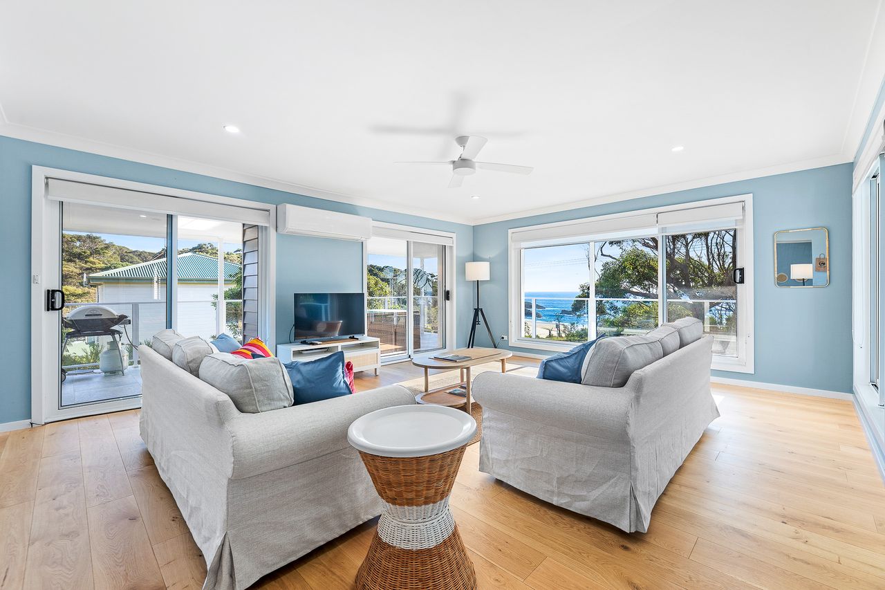 Relax and unwind in this stunning beach house directly overlooking the idyllic, dog-friendly Mystery Bay beach. It’s perfectly positioned to enjoy all the surrounding area has to offer including Narooma, the historic village of Tilba Tilba as well as the pristine beaches of the adjacent Eurobodalla National Park.