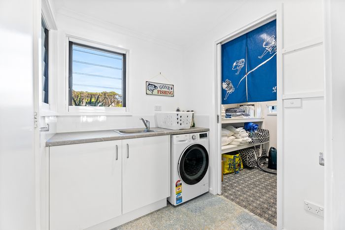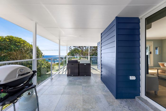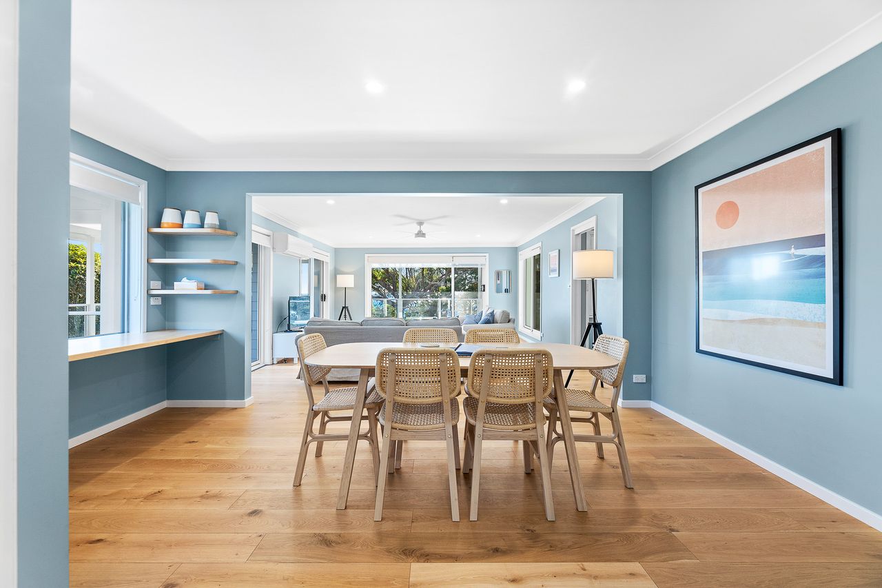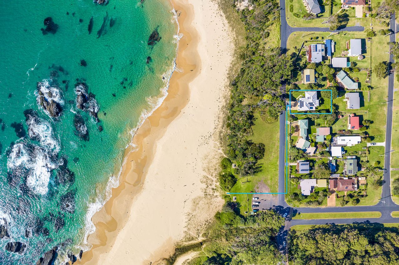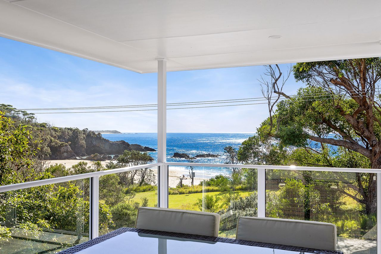 Relax and unwind in this stunning beach house directly overlooking the idyllic, dog-friendly Mystery Bay beach. It’s perfectly positioned to enjoy all the surrounding area has to offer including Narooma, the historic village of Tilba Tilba as well as the pristine beaches of the adjacent Eurobodalla National Park.