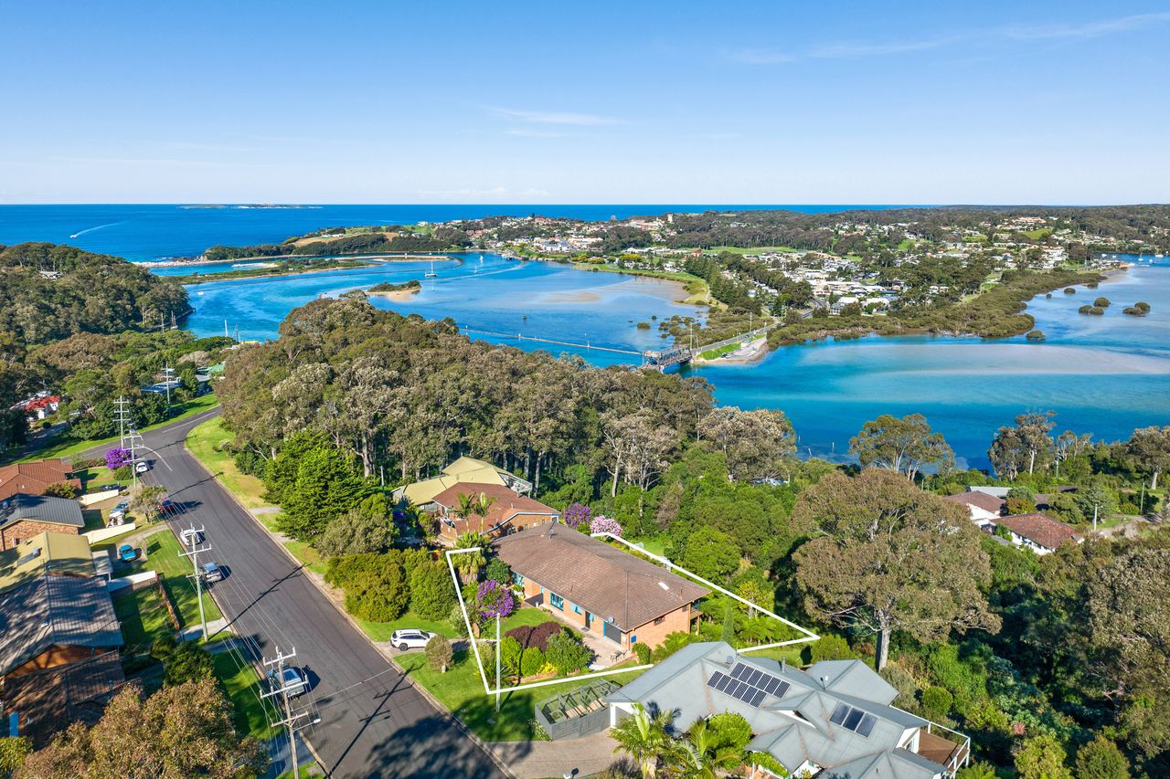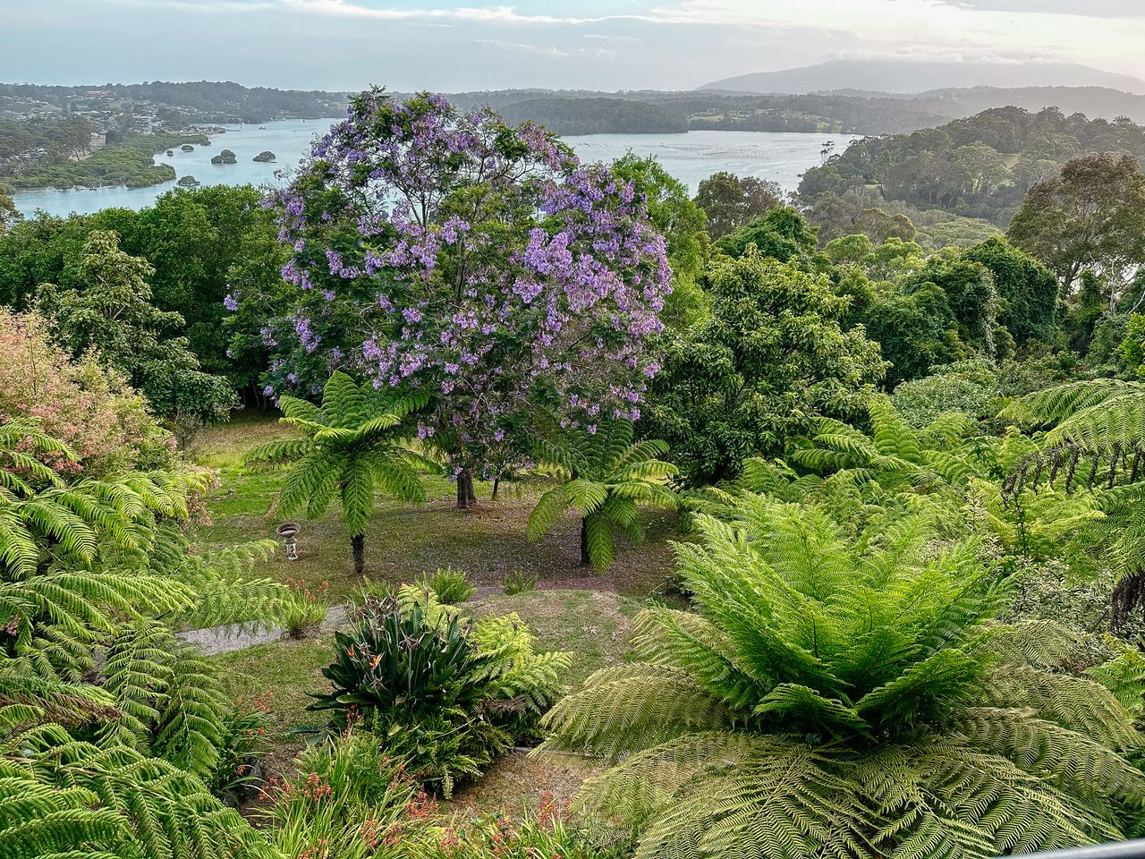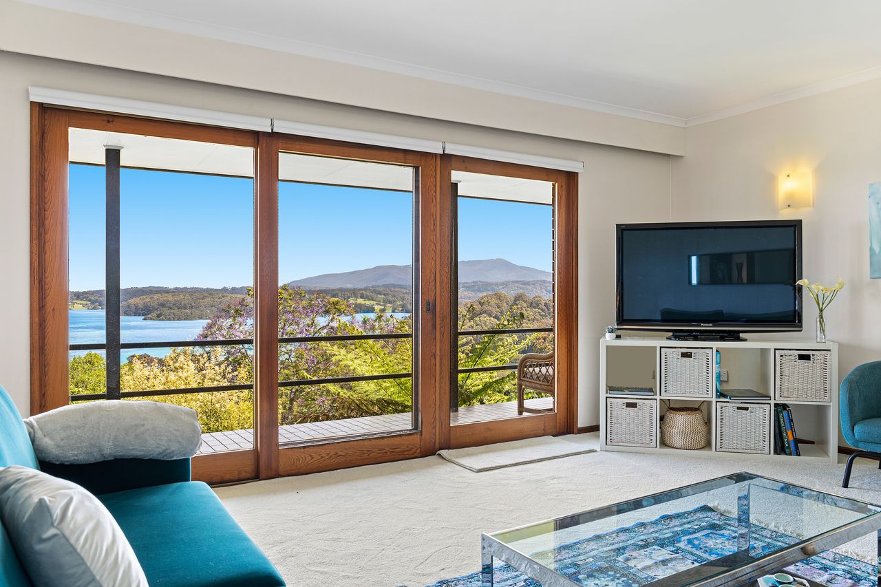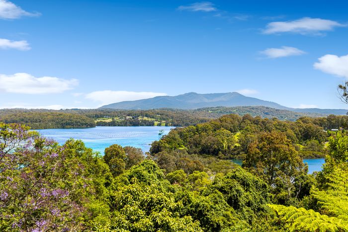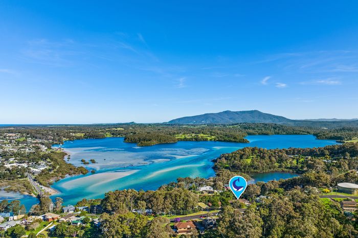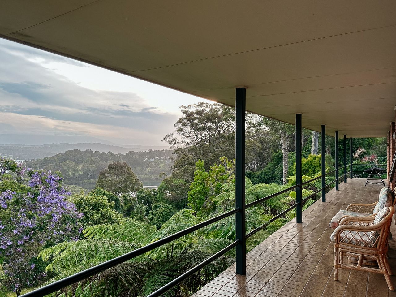 Offering captivating views over Wagonga Inlet, Gulaga Mountain & Narooma. This flat-living home is on a large double block with tropical lush gardens.