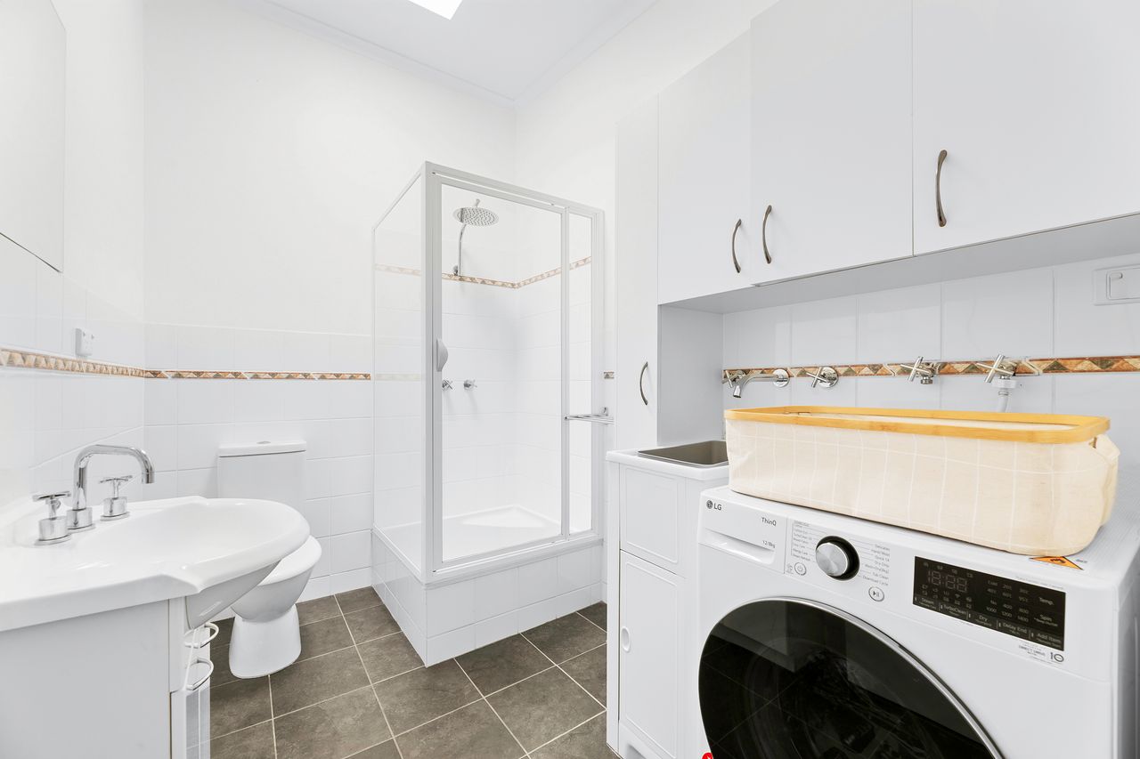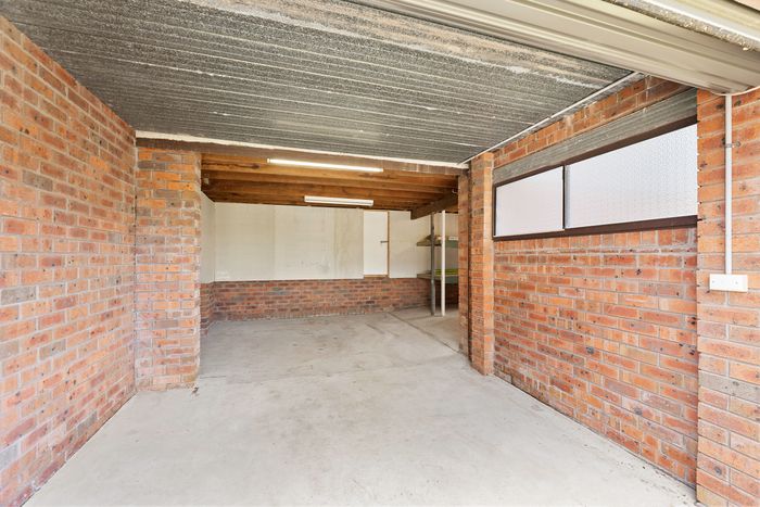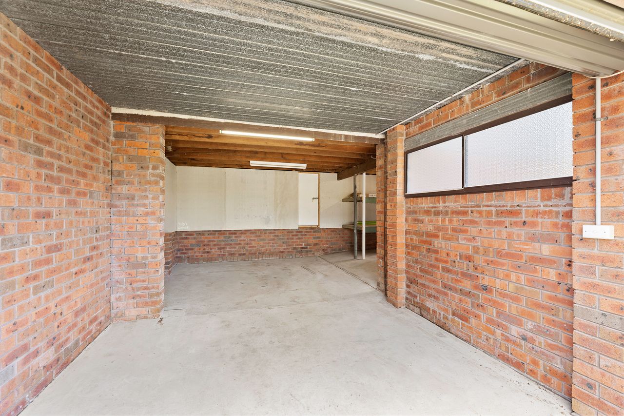 - single car garage & storage for bikes/fishing equipment/surfboards and golf clubs with remote control entry.
