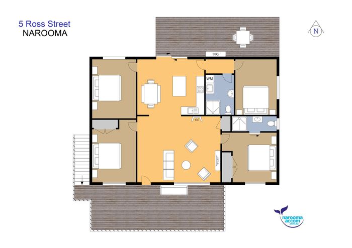 5 Welcome to your perfect coastal retreat in the heart of Narooma, one of New South Wales’ most scenic seaside towns. This spacious, light-filled home at 5 Ross Street is ideally located just a short stroll from the Narooma Golf Club and popular surf beach, offering the best of South Coast living for families, couples, and groups alike.