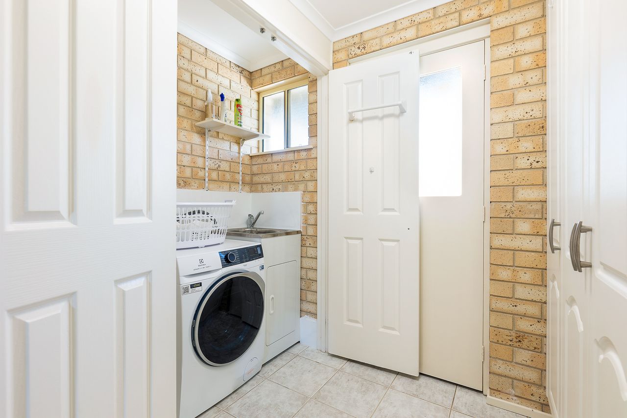 Offering a lovely sunny north facing aspect with filtered views onto Mummaga lake and towards the ocean. This is a very spacious unit with extra-large, open plan living room, kitchen, and dining room in a quiet complex.