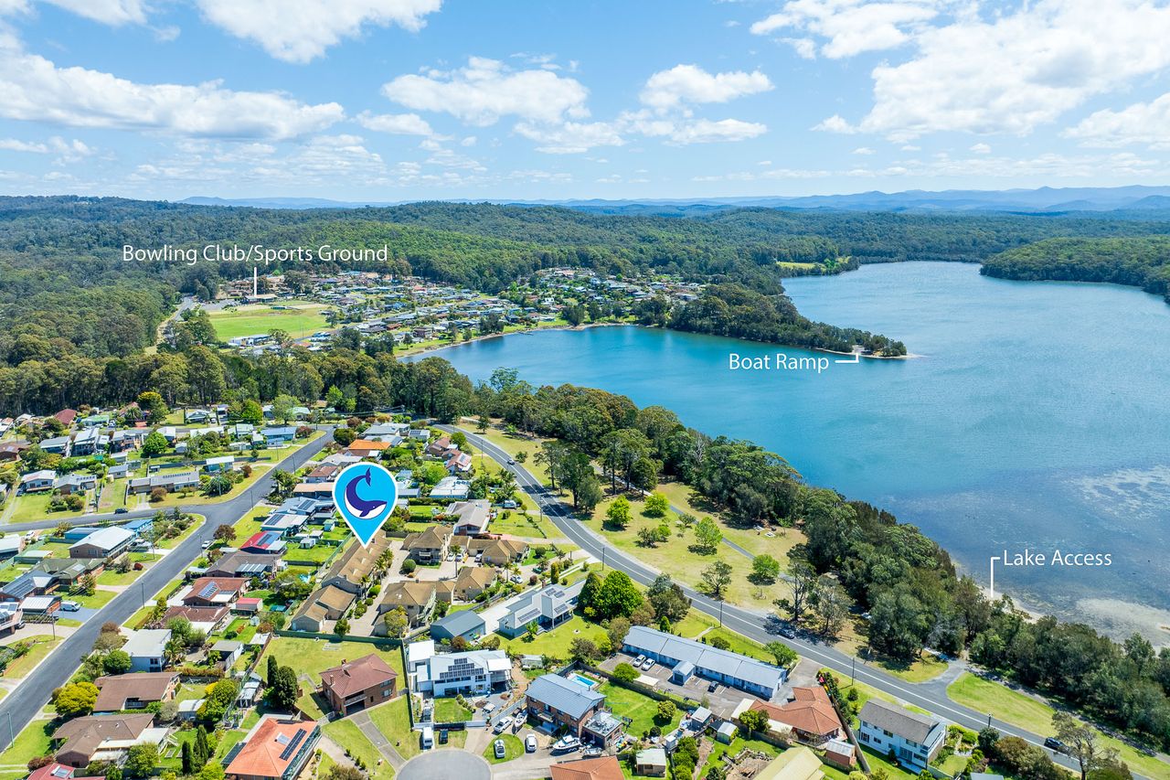 Situated opposite a lakeside reserve and bike path to Narooma - just a short walk to lake, beach, cafes, supermarket and bowling club.