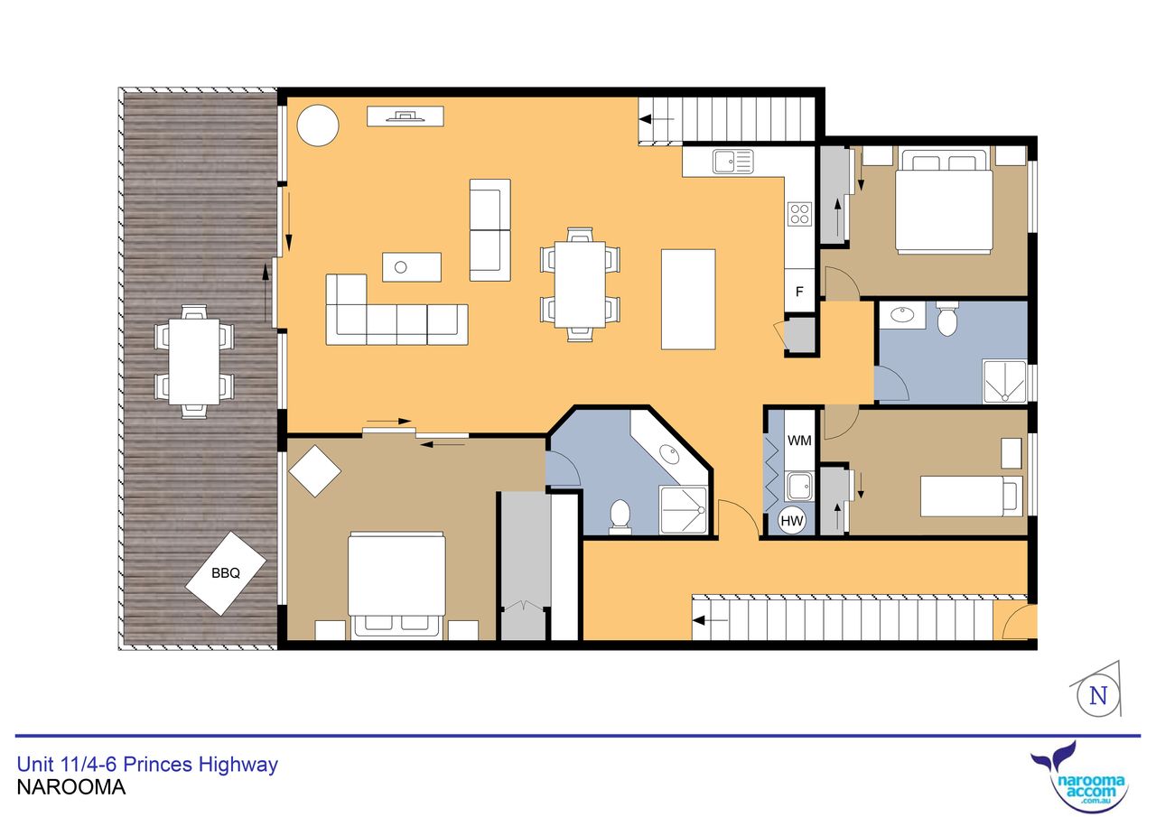 2 Recently renovated Boardwalk Apartments Unit Eleven. Sit back and truly relax at one of Narooma' s finest accommodation complex's almost on the water and next to Wagonga Inlet Bridge. This beautifully presented three bedroom, two bathroom unit is located within a short walking distance to shops, cafes/restaurants, clubs, indoor heated swimming pool, splash park, Narooma-to-Dalmeny Cycle-way and much more.