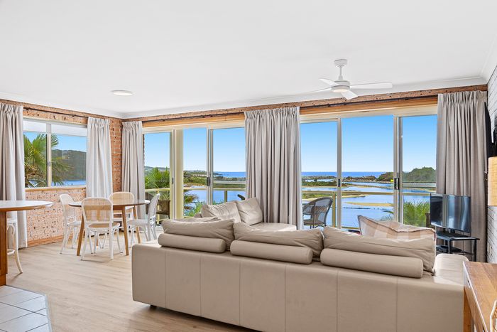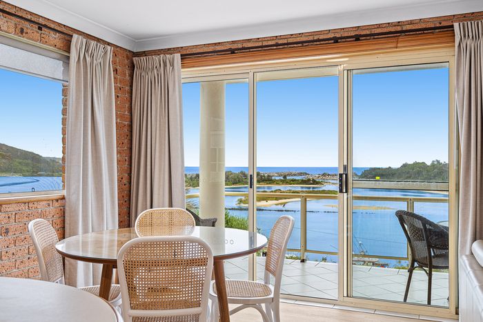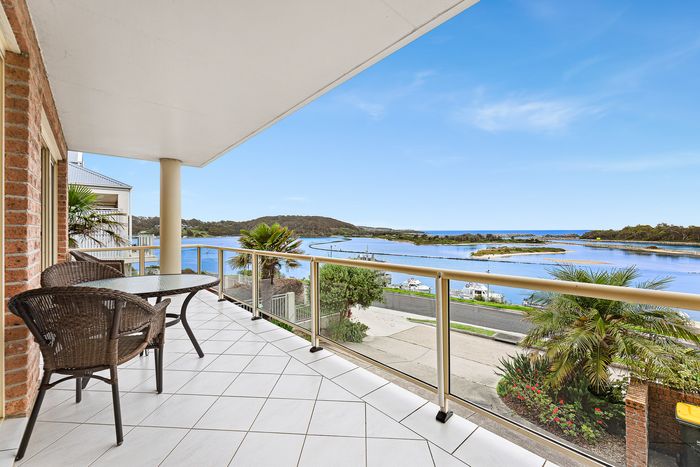 1 Wonderful water views sweeping from the bay to the ocean from this apartment. Two bedrooms, two bathrooms, open plan kitchen and lounge looking out on the absolute waterfront of Narooma.