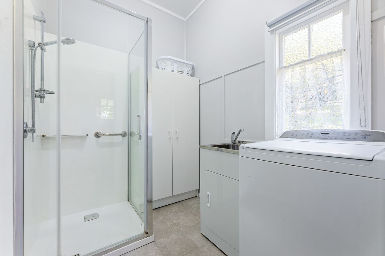 The property is serviced by continuous instant gas hot water supplying two showers and gas heating in the separate living room and the kitchen/dining area for those cooler days and nights. The main large bathroom includes a combined shower with base suitable for bathing young children. The laundry includes a second shower. A second toilet is located under cover of the large wrap around veranda.