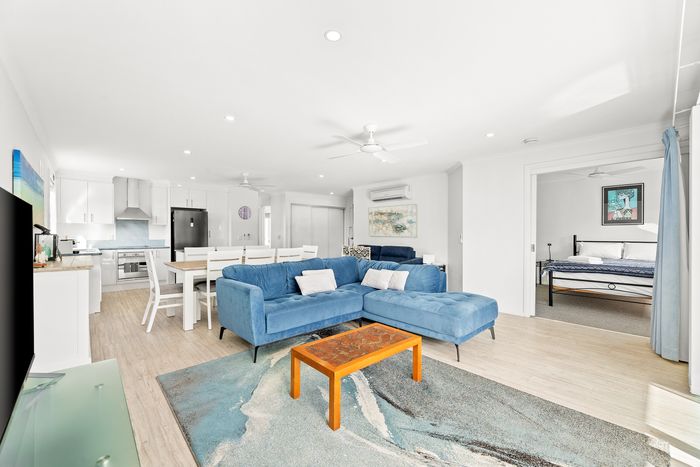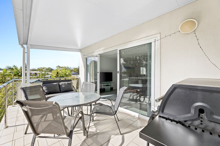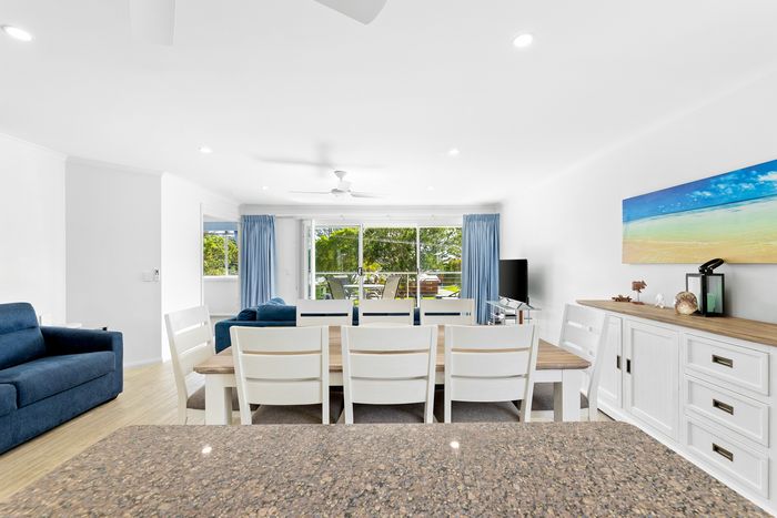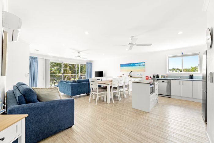 8 This lovely fresh modern unit is located on the top floor of the front block of the very popular Boardwalk Apartments. This unit has Inlet views with an easterly aspect. The unit features air conditioning, tandem double garage, gas Bbq, fully equipped kitchen with dishwasher and Smeg appliances plus a large balcony for alfresco dining. With all the comforts of home in a security gated complex you can sit back, relax and enjoy your stress free holiday.